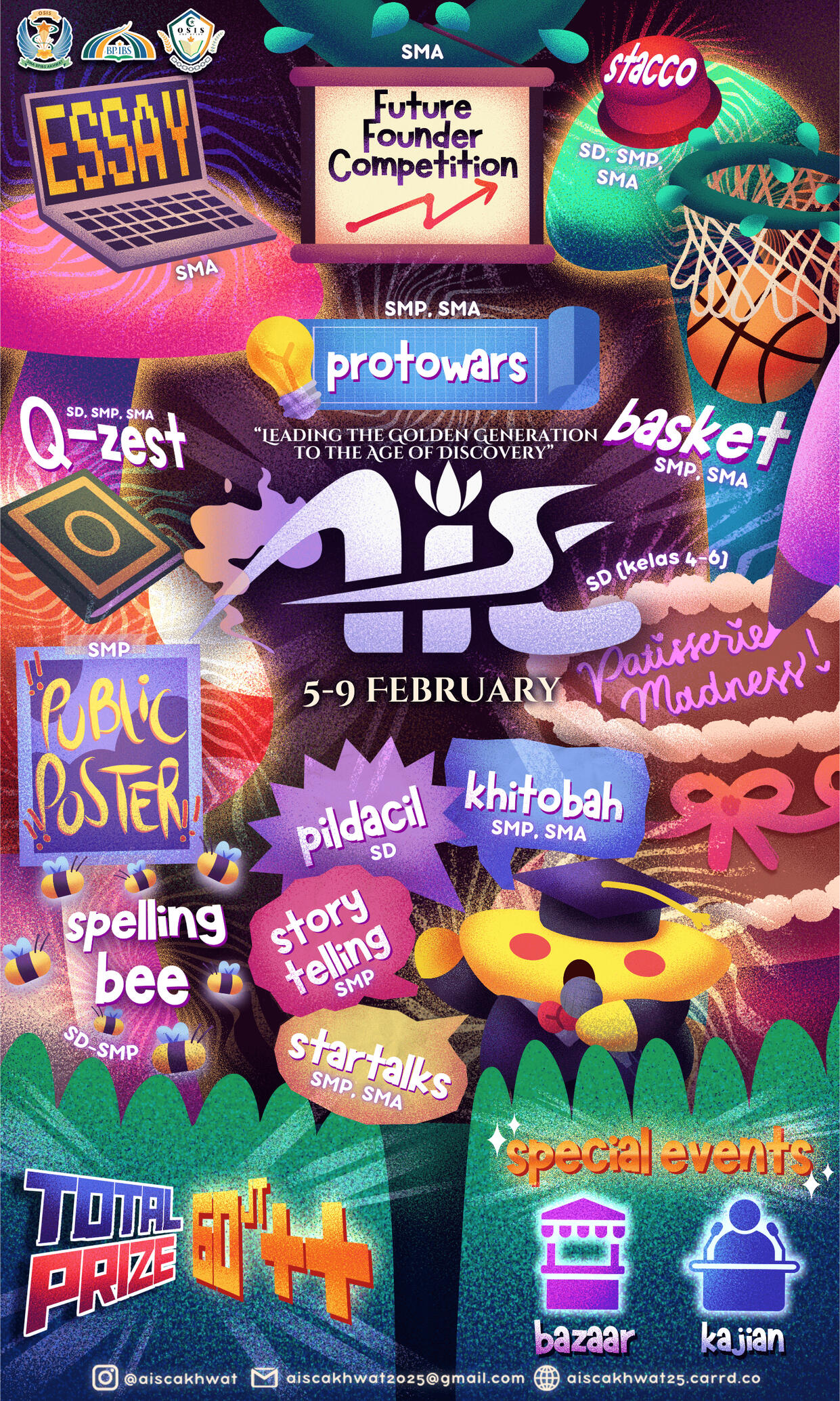 AISC (Annual Islamic Student Competition) BPIBS 2025 adalah acara tahunan yang diselenggarakan oleh program OSIS SMP-SMA Bintang Pelajar Islamic Boarding School. Kegiatan ini berupa kompetisi yang diikuti oleh siswa SD, SMP, dan SMA dari seluruh Indonesia. Program ini bertujuan untuk menggali potensi diri, menumbuhkan semangat belajar, mengasah pola pikir kritis, serta menjadi sarana bagi siswa untuk berkarya.Dengan mengusung tema "Leading the Golden Generation to the Age of Discovery" AISC 2025 hadir dengan misi mempersiapkan generasi muda agar mampu berkontribusi dalam mewujudkan visi Indonesia Emas 2045. Melalui semangat 3I—Innovate, Impact, dan Inspire—generasi muda didorong untuk menciptakan inovasi solutif, memberikan dampak nyata bagi masyarakat, serta menjadi inspirasi melalui prestasi dan kepemimpinan yang inklusif dan berintegritas.